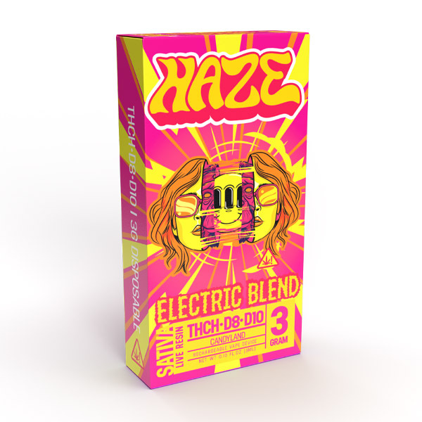 The Haze Electric Blend disposable vape device is a one-of-a-kind creation designed for the ultimate vaping experience. This rechargeable device is infused with a powerful combination of THCH, Delta 8, and Delta 10, all mixed together with a delicious Candy land flavor.
